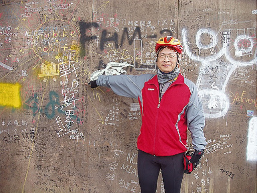 壽卡的最高點有一面牆被環島的單車騎士寫滿感言 ,我指著